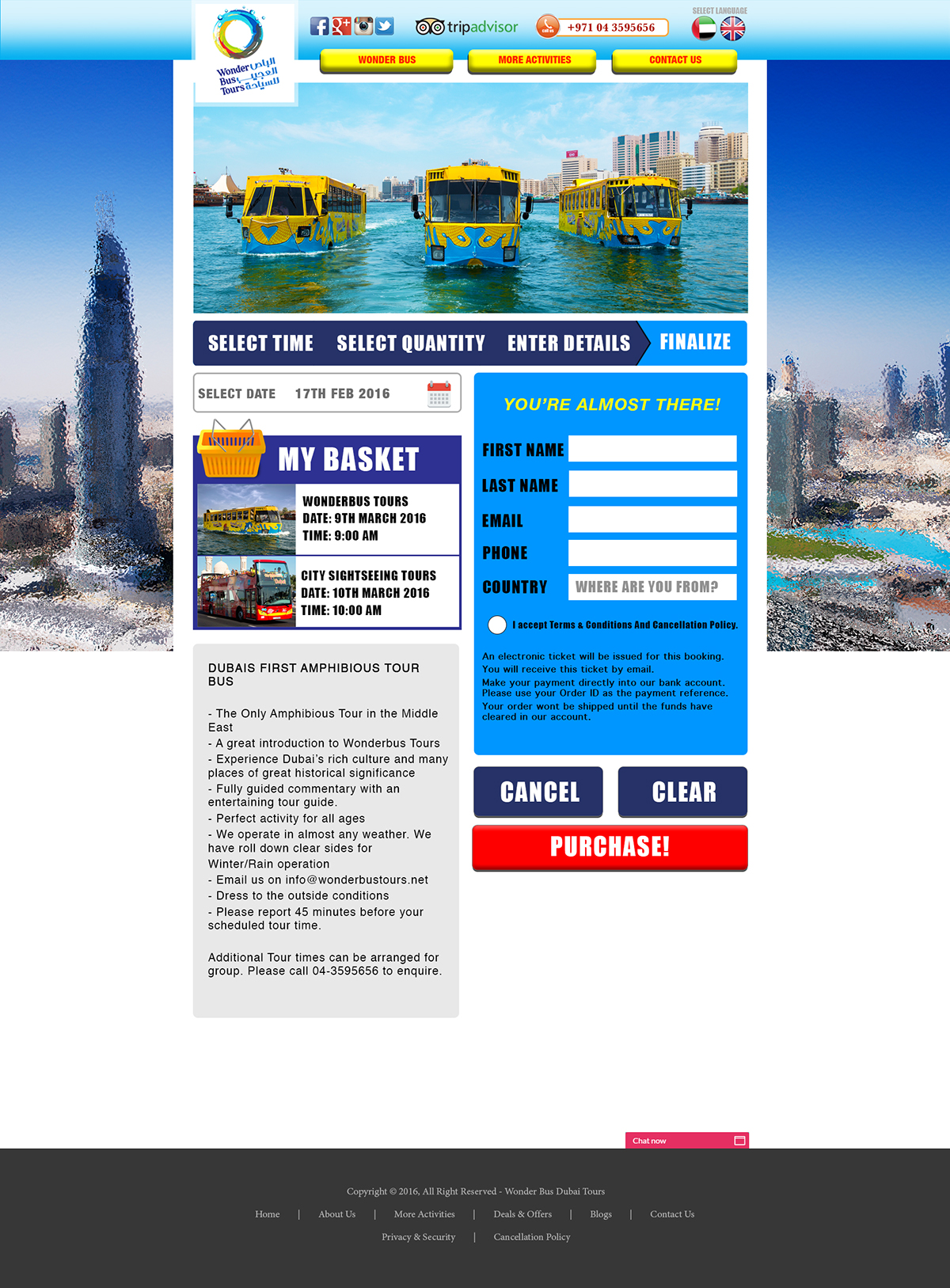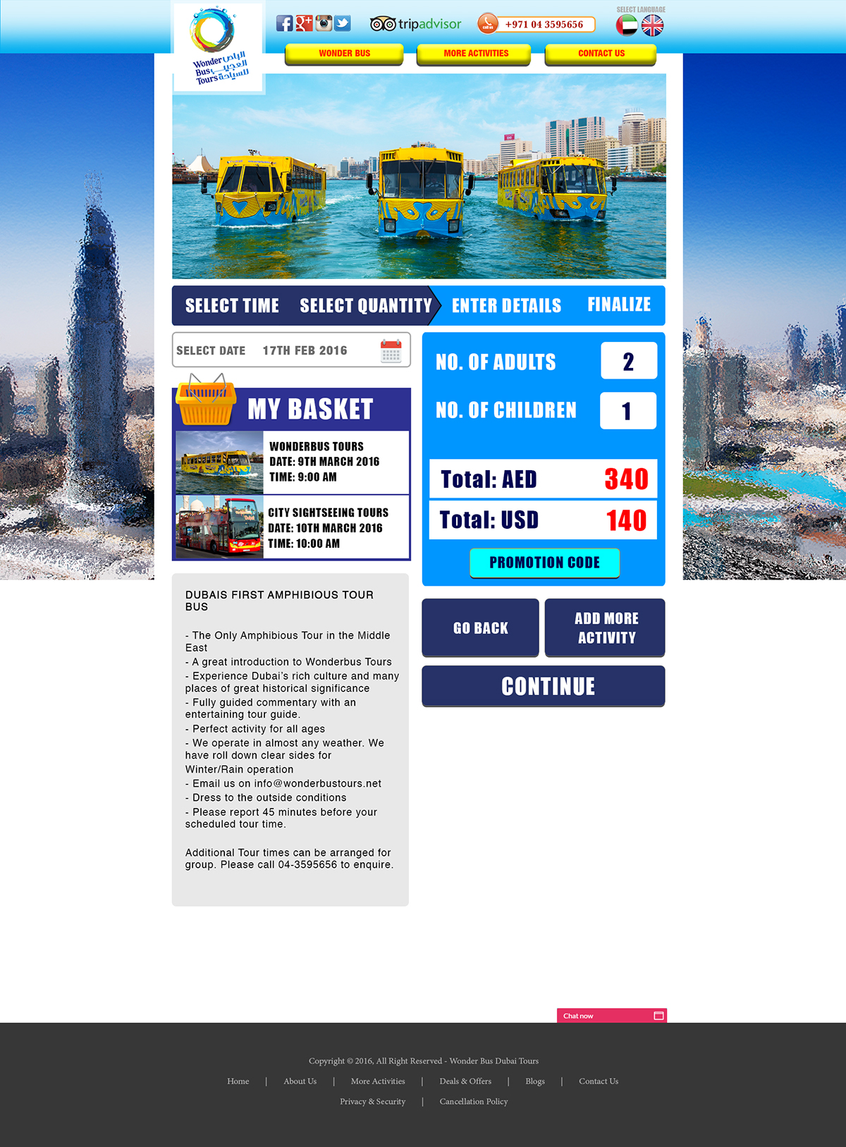WonderBus Tours is a premier tourism company based in Dubai, U.A.E, offering a unique experience through its flagship product, the Wonder Bus. The Wonder Bus is an amphibious vehicle that takes tourists through the historical and archaeological landmarks of Dubai, seamlessly transitioning from a bus to a boat for an unforgettable journey. Additionally, the company is engaged in hotel bookings, developing tourist itineraries, and selling various recreational activities across Dubai.